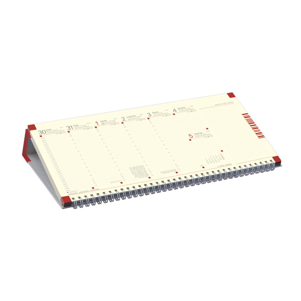 Fekvő tartóval (a gerincen olasz műbőrrel) forgalmazott chamois (krémszínű) tömbös, asztali naptár, perforált jegyzetrésszel. A dőlésszög ergonomikus használatot biztosít. Ez a naptár hasznos kiegészítője lehet íróasztalának, otthonának.