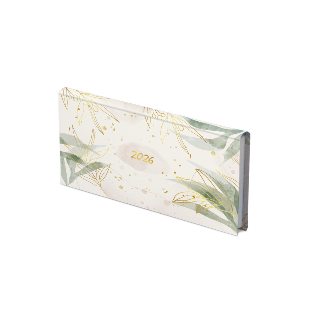 A fehér papírblokk heti beosztással készült, így egy oldalpár egy hét napjait foglalja magában. A színes oromszegő, a jelzőszalag és a sarokperforáció segíti a könnyű használatot és navigációt.