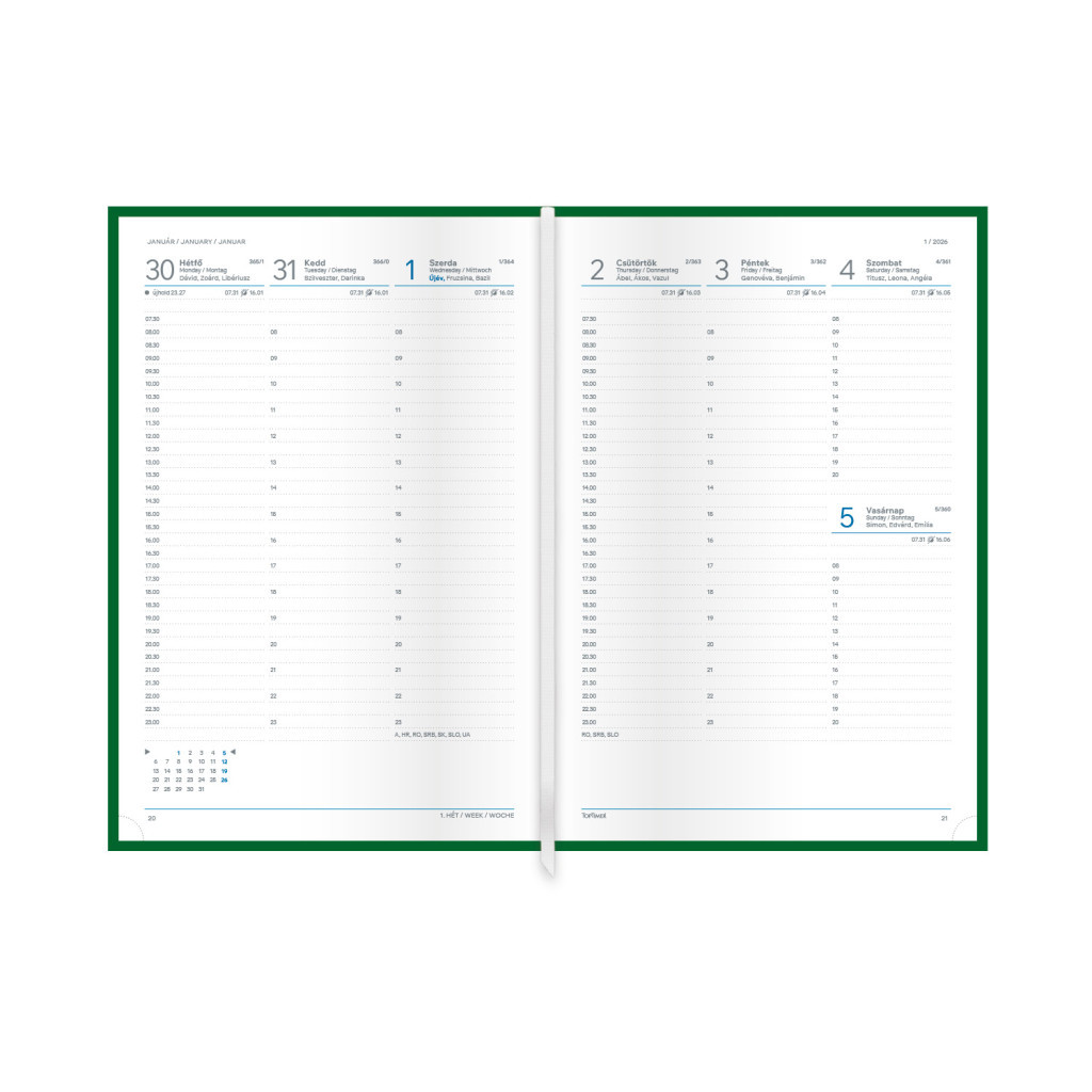 A Vario B5 heti beosztású határidőnapló több, mint egy egyszerű naptár. A különleges, több színből összevarrt műbőr borítás garantáltan kitűnik a tömegből. Egy stílusos és funkcionális eszköz, amely segít rendben tartani a mindennapi teendőit és terveit. Ismerje meg a tökéletes társát a mindennapi szervezéshez és tervezéshez.